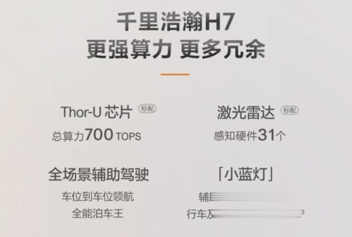 辅助驾驶方面,新款极氪001全系标配带有激光雷达和31个感知硬件的千里浩瀚H7辅助驾驶系统,辅助驾驶计算平台搭载NVIDIA DRIVE Thor-U芯片(总算力700TOPS),并标配辅助驾驶“小蓝灯”。