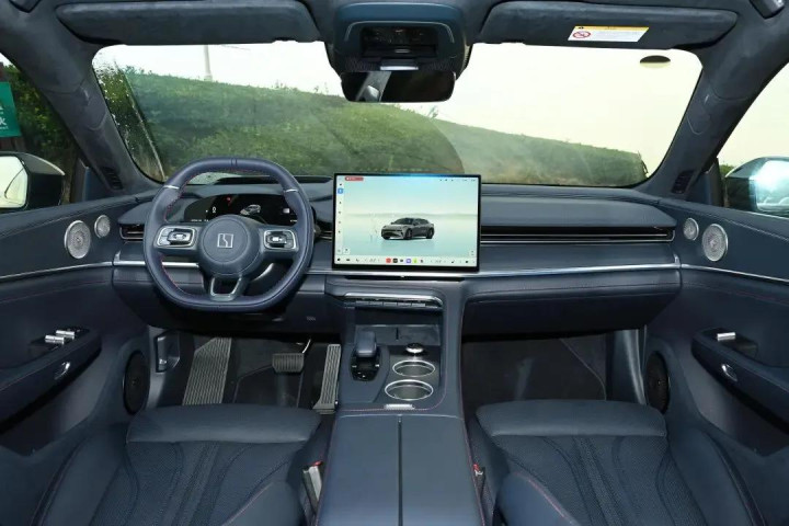 内饰则是大刀阔斧的进行了调整,这次直接做了4屏交互设计,包括39.3英寸的AR-HUD、13.02英寸的液晶仪表、16英寸的LED中控屏(30°旋转不是标配),以及后排的8英寸娱乐屏,显示足够清晰、信息和功能也非常丰富,特别是这套全新的液晶仪表,UI界面设计的观感非常简约,特别是开启赛道模式之后,能用特别直观的方式去显示胎压、胎温、电门输出、刹车力度、剩余电量等等信息。