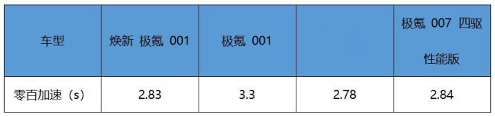 焕新极氪 001 全系标配全栈 900V 三电平台,峰值功率可达 680kW,零百加速最快为 2.83 秒。对比老款和竞品,焕新 001 比老款的 3.3 秒更快,与小米 SU7 Max(2.78 秒)、极氪 007 四驱性能版(2.84 秒)水平相近。